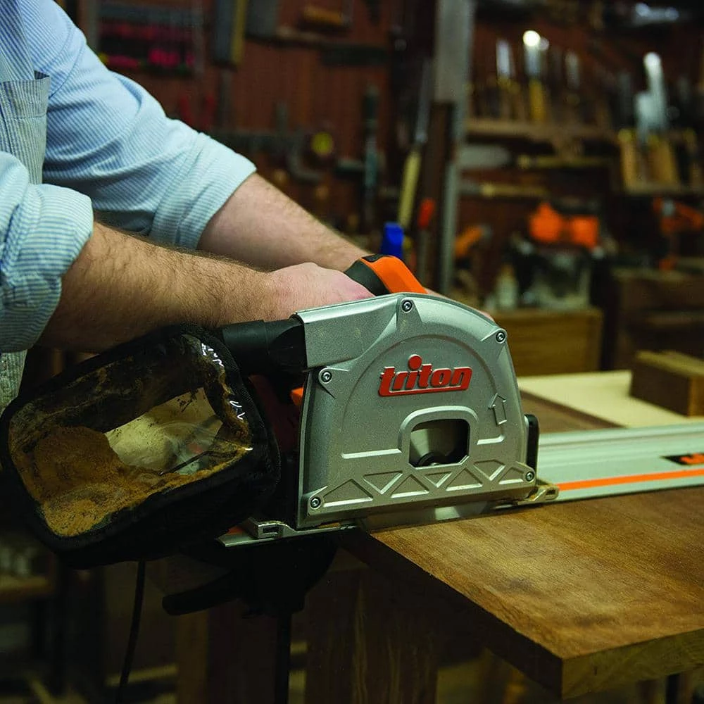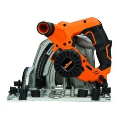 The TTS1400 Plunge Track Saw is a highly versatile, feature-packed tool with easy mode selection, fast set-up and advanced safety features. When fitted to a track, the TTS1400 delivers long, straight cuts and the flat design of the blade housing means the saw will work right up to the edge of the work piece ideal for trimming doors and cutting hardwood flooring. The mode selector allows for quick change between free plunge, scribe or blade change and cutting width indicators show the exact point at which the blade plunges into the work piece. Blade changing is safe and easy. The power switch locks out during the blade-changing process and the blade is easily accessed through the blade guard without having to remove the cover.