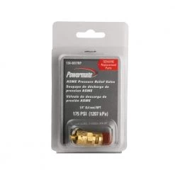 The Powermate pressure relief valve is part of the line of Powermate genuine replacement parts. The pressure relief valve releases when too much pressure has built up in the air compressor tank. The pressure relief valve is a safety must when operating an air compressor.