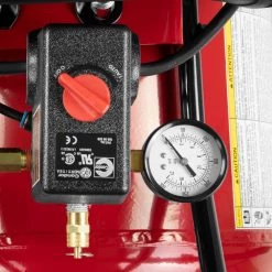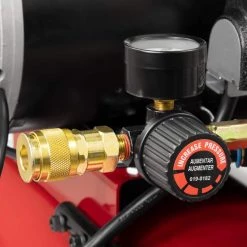 - Equipped with quick-set regulator, tank and working pressure gauges, quick connect air outlet and on/off switch