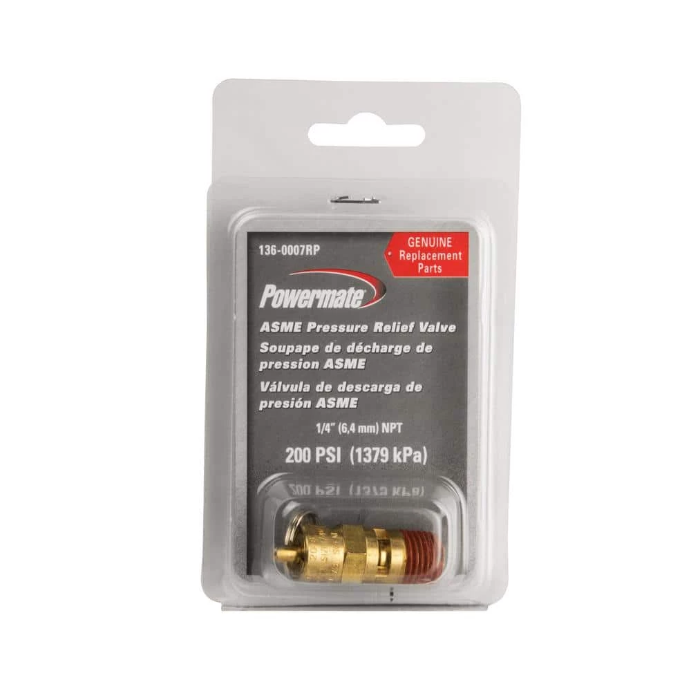 The Powermate pressure relief valve is part of the line of Powermate genuine replacement parts. The pressure relief valve releases when too much pressure has built up in the air compressor tank. The pressure relief valve is a safety must when operating an air compressor.