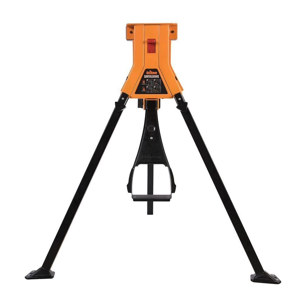 The iconic Triton Super Jaws can be easily transported right to the job, whether indoors, outdoors or to the workshop floor. Super Jaws provides fast, hands-free clamping of material up to 955 mm (0 in. to 37-1/2 in.) and a massive clamping force of up to 1000 kg (2200 ft./lbs.) enabled by the foot-operated clamping mechanism. Constructed from tough, powder-coated steel, Super Jaws will hold anything-from car parts and bicycles to timber and tubing. Features include a lock/release switch for fast release of the work piece and reversible jaws for extra-wide clamping capacity. The new and improved fame and leg design allows for better stability and setting up and folding down in seconds. The new and improved design can sustain a work piece of up to 200 kg (440 lbs.) all while providing a 360 access to the work piece.