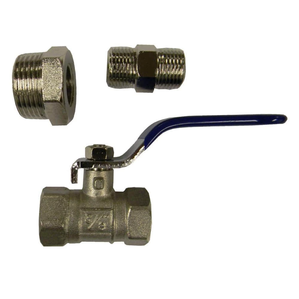 - 3/8 in. ball valve, with 3/4 in. NPT (M) x 3/8 in. NPT (F) bushing and 3/8 in. x 3/8 in. NPT pipe fitting
