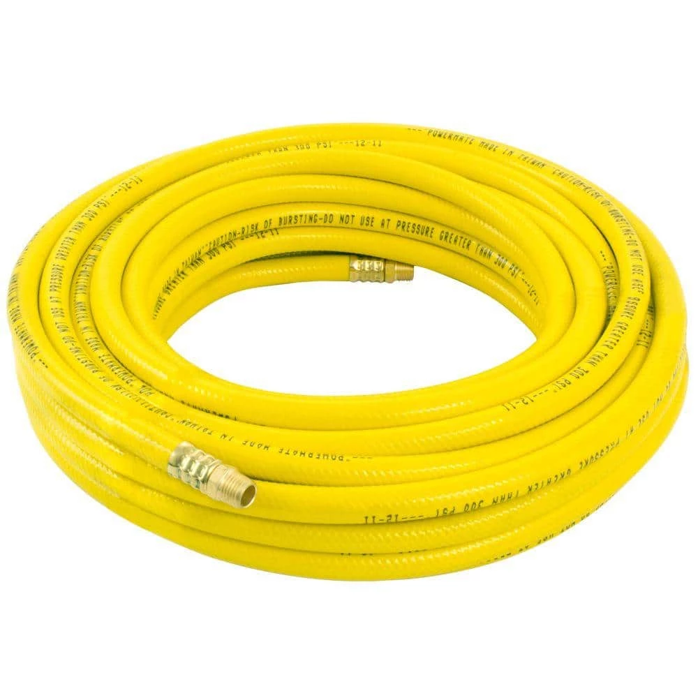 Powermate PVC air hose is easy to see in all applications with a very visible yellow exterior. Air hose has a high abrasion resistant cover. Powermate PVC air hose is also oil and kink resistant, making this replacement part user friendly.