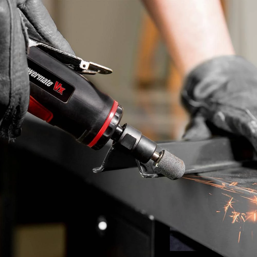 The Powermate air die grinder is an extremely versatile tool for honing, sharpening, boring or reaming. Accepts a wide variety of 1/8 in. bits. Intrinsic throttle lever provides improved comfort and control. Small and lightweight with easy one-hand operation. Use with Powermate grinding stone set P024-0138SP.