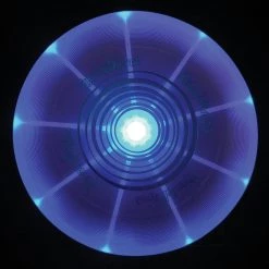 The Flashflight was designed by a professional Ultimate player, so it performs beautifully. Made of lightweight, durable materials, with true balance and long, straight flight, it weighs in at 185 grams and looks, feels, and flies like the highest quality non-illuminated discs. In other words, you’ll want to reach for it even during the day. But at night, with a simple press of the switch, the long-life (100,000-hours) Flashflight LED lights up with a patented fiber-optic array that extends to its rim, so the entire disc is illuminated from every angle. Available in 4 bright colors, it provides endless hours of nighttime entertainment, for everyone from the serious athlete to your crazy Uncle Max. Great for lawn, park, and beach games, it’s water-resistant and comes with easily replaceable, long-life batteries.