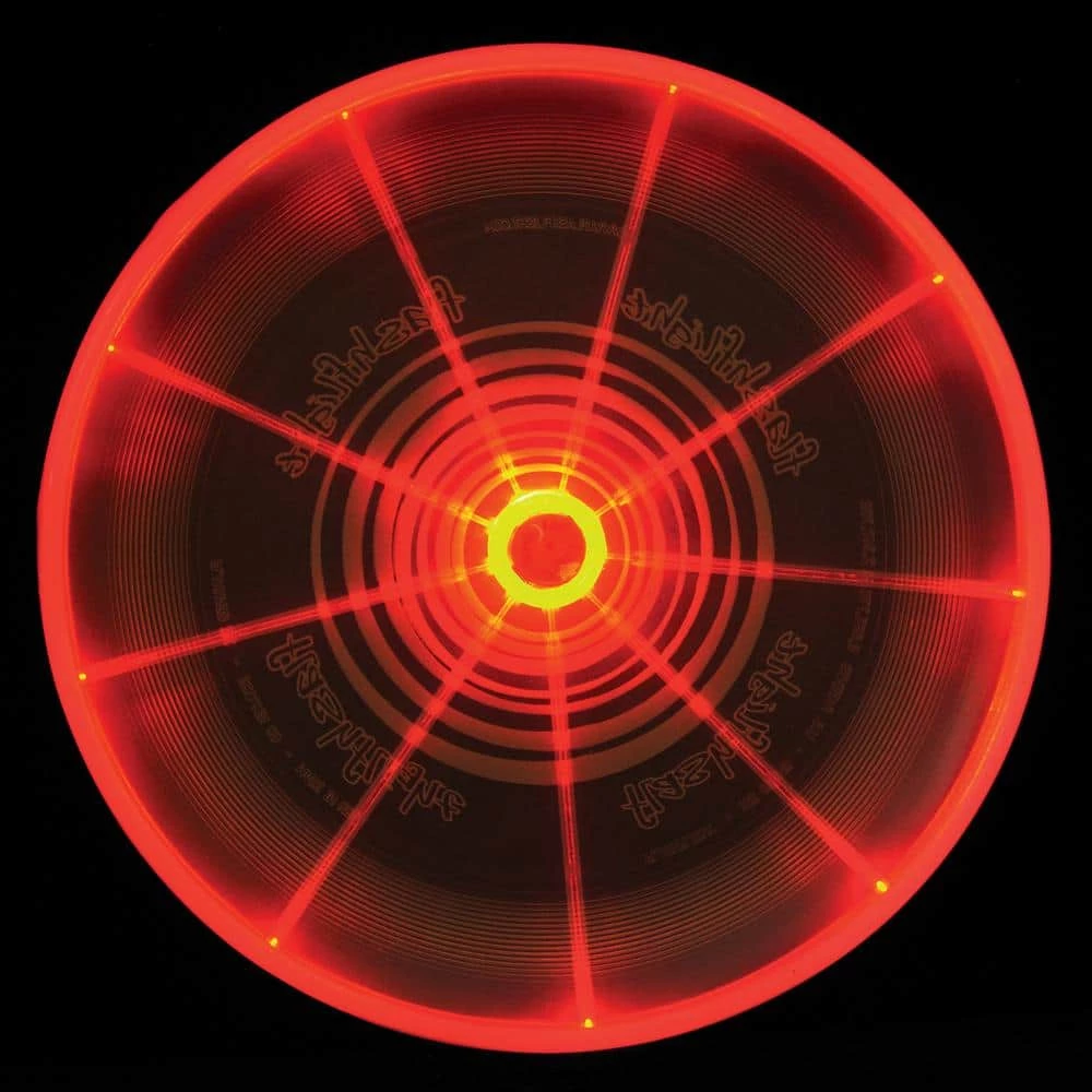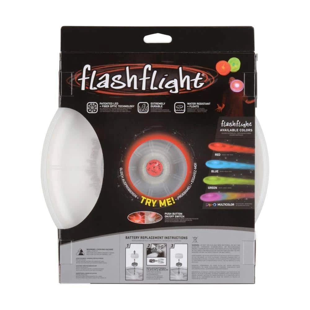 The Flashflight was designed by a professional Ultimate player, so it performs beautifully. Made of lightweight, durable materials, with true balance and long, straight flight, it weighs in at 185 grams and looks, feels, and flies like the highest quality non-illuminated discs. In other words, you’ll want to reach for it even during the day. But at night, with a simple press of the switch, the long-life (100,000-hours) Flashflight LED lights up with a patented fiber-optic array that extends to its rim, so the entire disc is illuminated from every angle. Available in 4 bright colors, it provides endless hours of nighttime entertainment, for everyone from the serious athlete to your crazy Uncle Max. Great for lawn, park, and beach games, it’s water-resistant and comes with easily replaceable, long-life batteries.