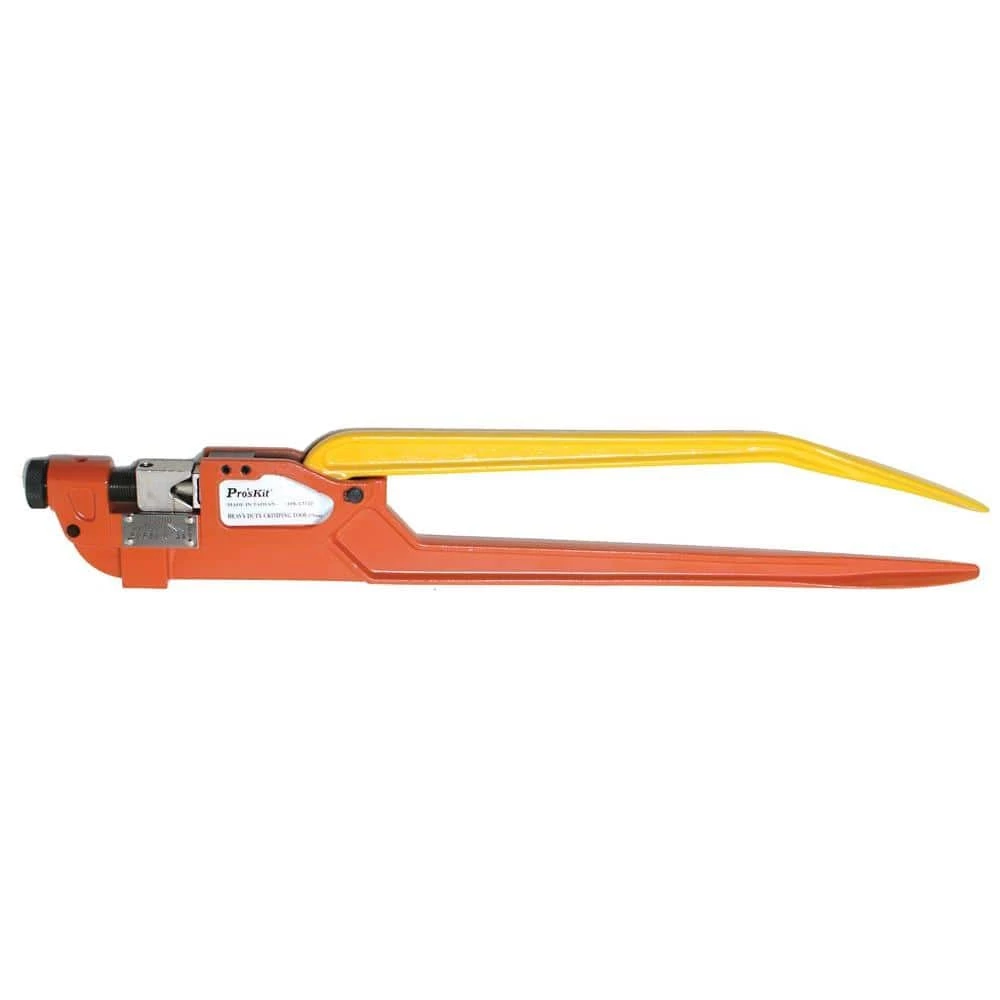 This heavy duty crimp tool will work on terminals up to 250 MCM. Will work on both copper and aluminum. Built to last for years of use. Sizing guide is listed directly on tool next to the crimp dies.