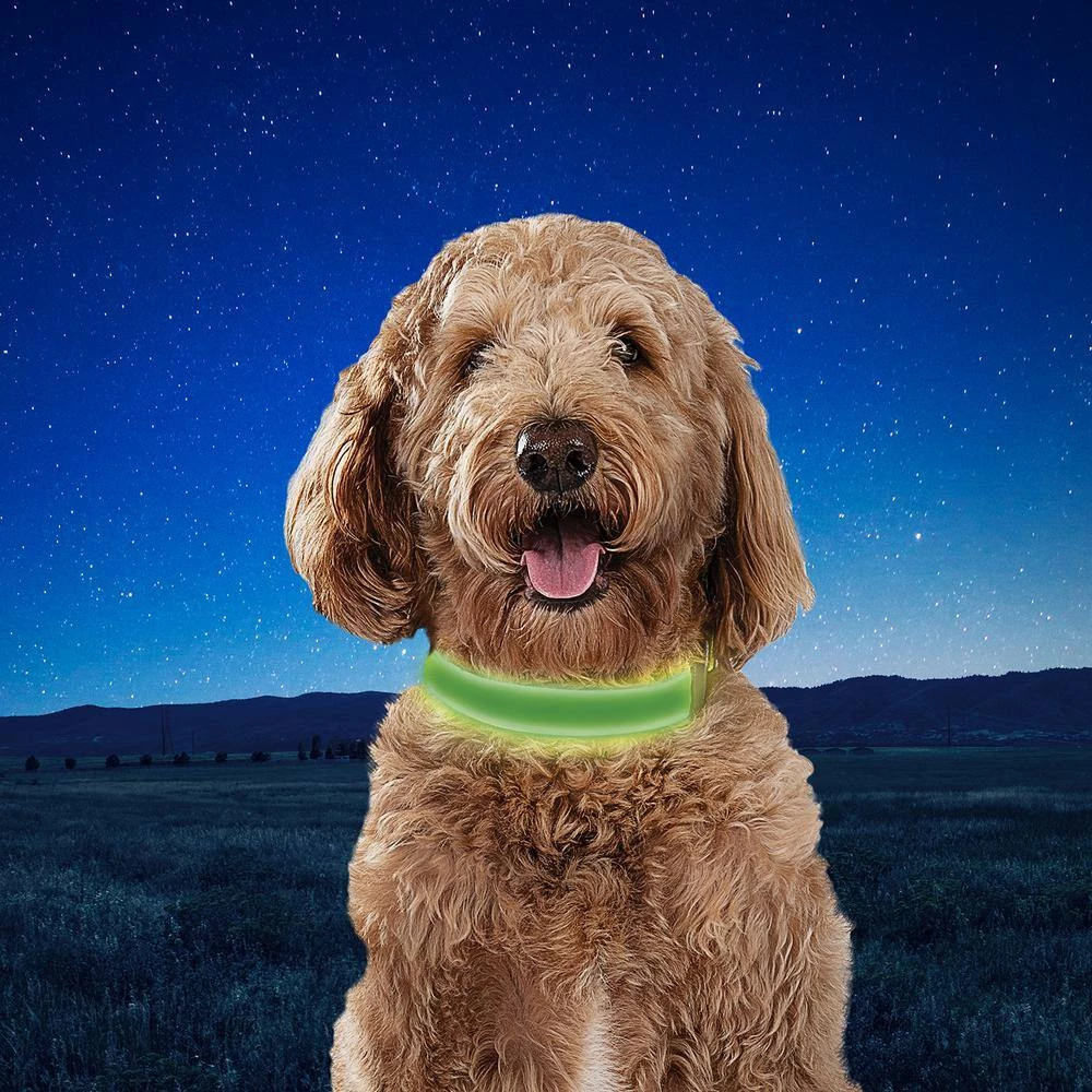 Welcome to a whole new world of nighttime visibility. 2 ultra-bright LEDs send light through an integrated optical fiber to create full-length illumination so bright you need to see it to believe it. Featuring the convenience of rechargeability and easy push-button operation, this collar lights up for more than 6-hours on a single charge. Nite Ize optical fiber technology transmits light throughout the entire length of the collar without loss of light output and offers both constant glow and flash mode. The high-quality metal belt-buckle style closure is simple to adjust. This highly water-resistant collar is designed for ultimate durability and is available in a variety of sizes to fit large and small dogs.