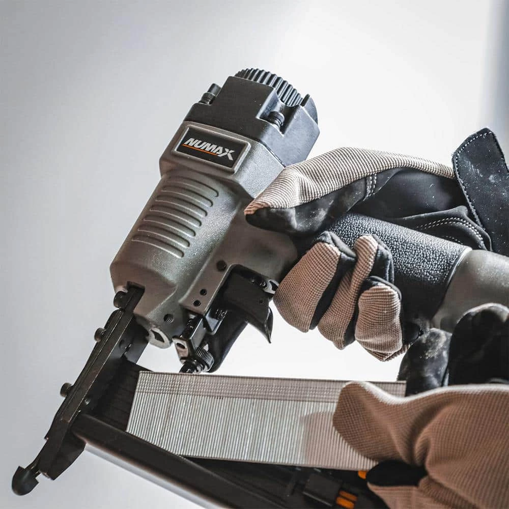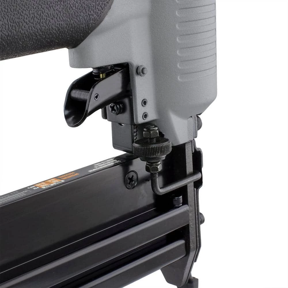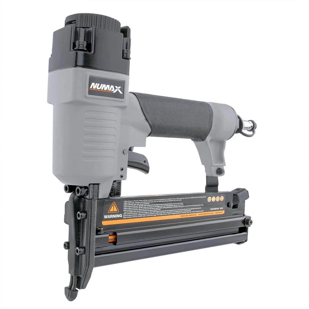 The NuMax S2-118G2 Pneumatic 2-in-1 18-Gauge 2 in. Brad Nailer and Stapler is an excellent choice for interior and exterior finish work and trim, cabinetry, cabinet backing, window casing, picture frame assembly, and hobbies and crafts. This air powered combination nail gun and stapler is compatible with 18 gauge brad nails from 3/8 in. to 2 in., and 18 gauge glue collated 1/4 in. narrow crown staples from 1/2 in. to 1-5/8 in. The ergonomically engineered aluminum body is durably constructed, resulting in a lightweight tool great for use over extended shifts. A comfort grip handle reduces fatigue while increasing control and accuracy of fastener placement. Other features of this combo finish tool include tool free depth adjust, a no mar safety tip, 360 degree adjustable exhaust, and a reload indicator. This affordable and rugged brad nailer and stapler will increase productivity for DIYers tackling home improvement and repair projects, as well as professional contractors at the jobsite. The Pneumatic 2-in-1 18-Gauge 2 in. Brad Nailer and Stapler includes air tool oil and adjustment tools, and is covered by NuMax’s 1 Year Limited Tool Warranty and 30 Day Wearable Parts Warranty.