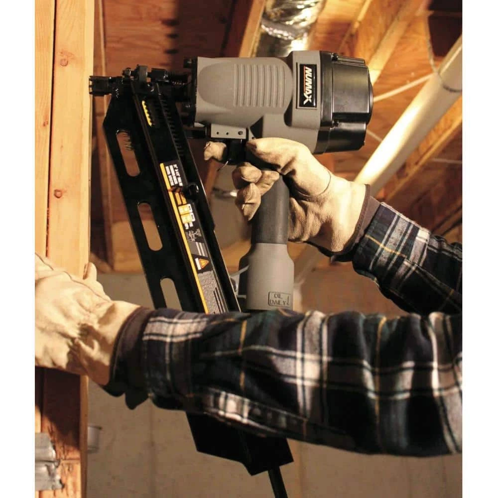 The NuMax SFR2190 Pneumatic 21 Degree 3-1/2 in. Framing Nailer is ideal for working on framing, subfloors, roof decking, pallet and shipping crate assembly, and wood fencing. This durable air powered nail gun is built to last and features an anti-dry-fire mechanism, a dual mode trigger, tool-free depth adjust, a no mar safety tip, a comfort grip handle, and 360 degree adjustable exhaust. The 21 Degree 3-1/2 in. Framing Nailer will increase the productivity of DIYers tackling home improvement and repair projects as well as construction contractors at the jobsite, and is covered by NuMax’s 1 Year Limited Warranty and 30 Day Wearable Parts Warranty.