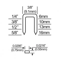 - Compatible with 22-gauge 3/8 in. crown staples from 1/4 in. to 5/8 in.