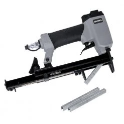 Use this Pneumatic 22-Gauge 5/8 in. Upholstery Stapler to finish your work projects. It features an aluminum die-cast design that fits comfortably in your hand. It’s also lightweight for easy use.