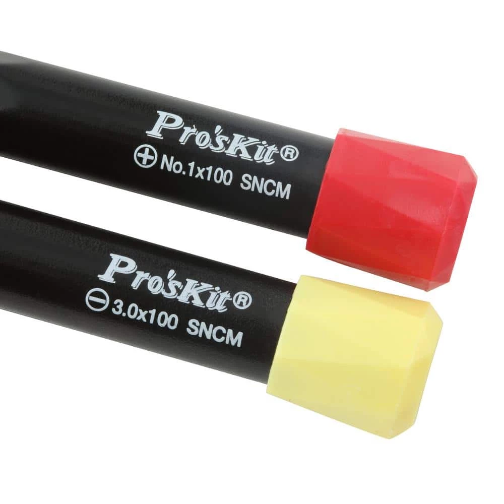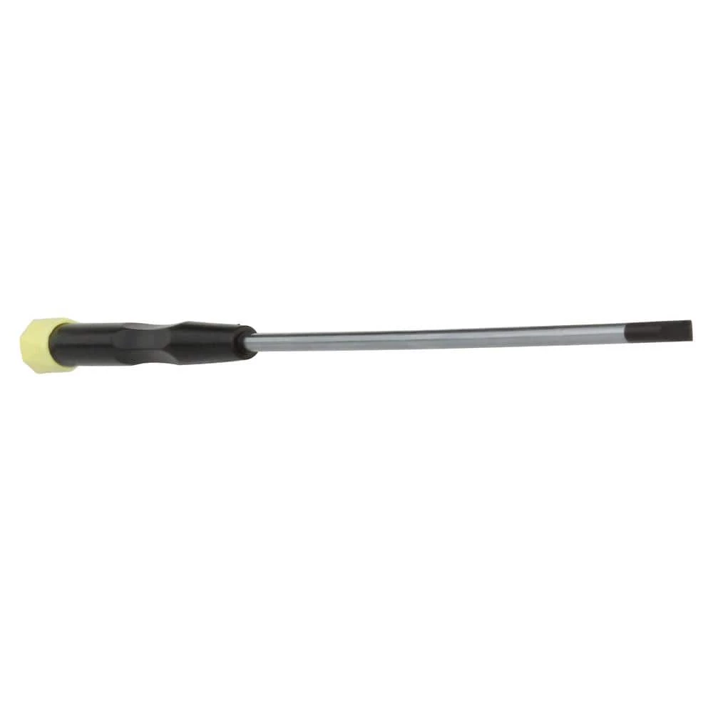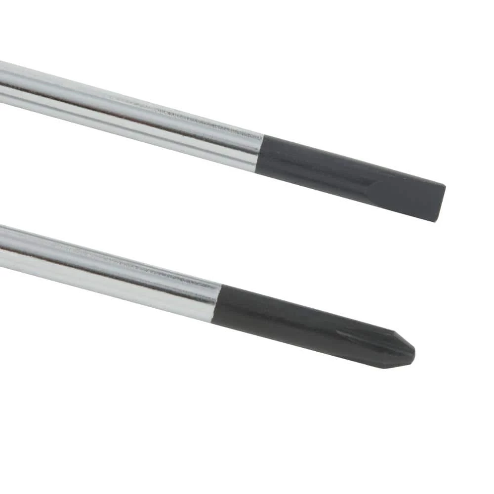 A 6-Piece screwdriver set with 3 flat blades and 3 Phillips screwdrivers. The screwdrivers have long shafts and are ideal for reaching recessed screws in electronic equipment. Handles are made from molded plastic and incorporate finger grips. Shafts are made from nickel chrome molybdenum.
