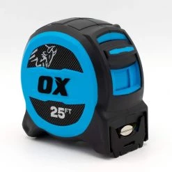 Built with the tradesman in mind, the OX Tools Pro TUFF BLADE Tape Measure is designed to stand up to the rigors of jobsite, for multiple trades. The newly designed OX TUFF BLADE has 0.02 mm of nylon coating offering rigidity, durability, and safety. The width of the blade is 1-1/4 in. and (paired with the nylon coating) offers a 13 ft. stand out and 15 ft. reach. The nylon coating also helps stop unwanted debris from entering the case while preventing the blade from splitting/breaking. The hook of the blade has 2 rare earth magnets creating a strong hold and will stay attached to metals, resisting up to 6 lbs. of force. With long stand out and a wide magnetic hook, solo measuring is faster and easier. The dense ABS case is shrouded in rubber over-mold to resist shocks, drops, bumps, and other damage, while keeping the user comfortable after all day use.
