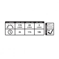- 4 modes: white: high flood, low flood red: high flood, flash