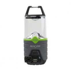 The Nite Ize Radiant 314 Rechargeable Lantern is a full-featured lighting solution that offers ultimate reliability and versatility. A built-in power bank with a USB output port allows you to charge small devices wherever you go. Featuring 314 lumens of bright white light softened by a built-in light diffuser, this dual-color (white and amber) lantern has 4 modes, plus lockout. The push-button switch makes it simple to dial in your perfect illumination by easily cycling between bright white light (high, medium, low) and a warm night-vision saving amber mode. In addition to 4 LED modes, this lantern offers lockout to prevent accidental activation and battery drain This durable lantern is impact and water resistant (IPX4) and features a built-in carabiner clip, making it easy to clip, carry, and hang. The included light-diffusing storage bag is dual-purpose, softening the light when the lantern is in use and offering additional protection when not in use. Powered by a rechargeable lithium ion battery that charges using a micro USB cable (included), this lantern can run up to 96-hours on a single charge.