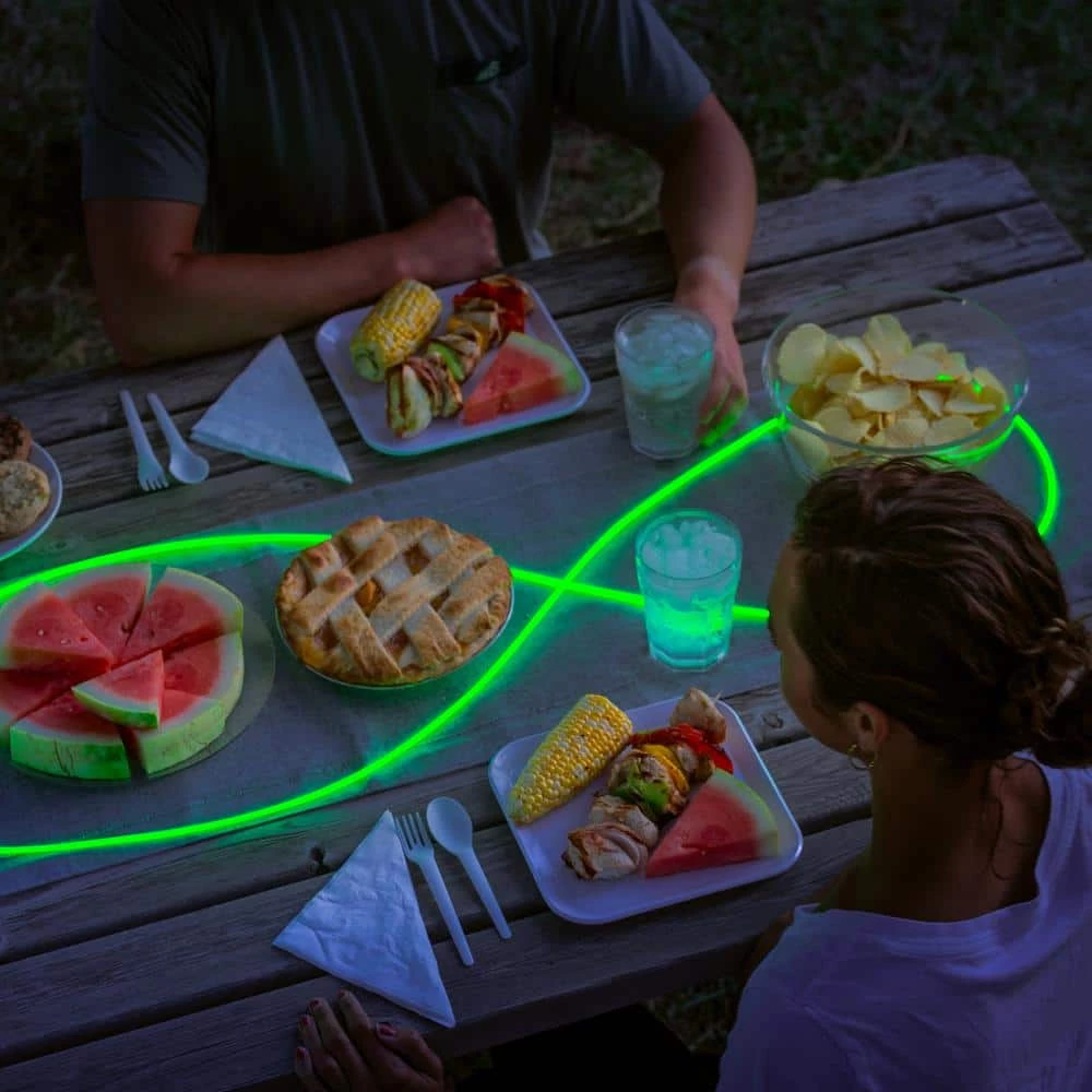The Radiant Rechargeable ShineLine adds a touch of home even if you’re far from it, featuring integrated fiber optic and LED technology to create a truly seamless lighting setup anywhere. Simply hang, spiral, or spread out the portable ShineLine wherever you need light-on the patio table for a barbecue, around the RV or campsite, on a bike for eye-catching safety illumination, above the hammock while you hang with nature, or in the kid’s room for added ambiance. ShineLine features pass-through power technology, allowing it to be powered by either: its built-in rechargeable battery, a USB AC power source, a USB DC power source, or an external USB battery bank. And when it’s time to charge up, the pass-through power keeps the string illuminated while charging to prevent loss of light. With 10 ft. of illumination, a flexible design that shapes your space, and 4 attached Gear Ties, it’s never been easier to achieve ambiance and visibility that moves with you. This modern LED string light also features glow and flash modes, as well as water resistance. When it’s time to move on, simply coil up the string and wrap it tight with the reusable Gear Ties for easy storage.