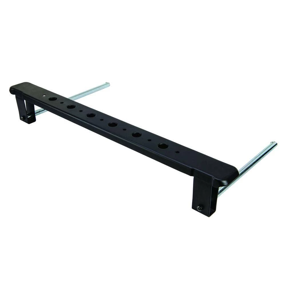 Side support bracket with chrome plated tubes, to prevent corrosion. Adjustable reach to support the workpiece. Useful when dealing with large projects. 600 mm maximum side extension (from table center line).
