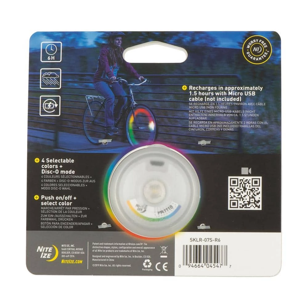 This rechargeable SpokeLit with Disc-O Select is the most fun and convenient way to increase side visibility while riding your bike. Illuminated by 2 bright, efficient LEDs, this SpokeLit allows you to set it to 1 of 4 colors or leave it in color-changing Disc-O mode. Designed for all your rides, rain or shine, the SpokeLit is constructed with a durable, weather-resistant body that easily attaches to most spokes without the need for tools. Micro USB rechargeable (cable not included).