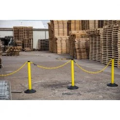 Built to withstand the demands of the toughest environments, the US Weight ChainBoss can be used both indoors and outdoors. The ChainBoss is equipped with features perfect for safely controlling crowds, directing the flow of foot traffic or protecting a closed area for construction or cleaning. The ChainBoss features patented Integrated Chain Storage system so chain is stored inside the post when not in use for incredible convenience. Then, easily pull the chain out of the post using the twist-lock top which allows for easy chain disbursement. Each 37.88 in. tall post includes 10 ft. of all-weather molded, high-tensile strength 2 in. plastic chain. Both the stanchion and the chain feature SunShield, 10-year UV protection. The ChainBoss features a durable, scratch-resistant high-density polyethylene base that can be user filled with sand or gravel. On the bottom of the base are no-skid, non-marking rubber ft. keeping the post in place even during rough use. No tools are required for assembly. The Easy Connect snap together construction between the post and base takes less than 5 seconds and is easy as 1, 2, 3. The ChainBoss is only compatible with the U2513 Sign Holder to advertise signage (sold separately).