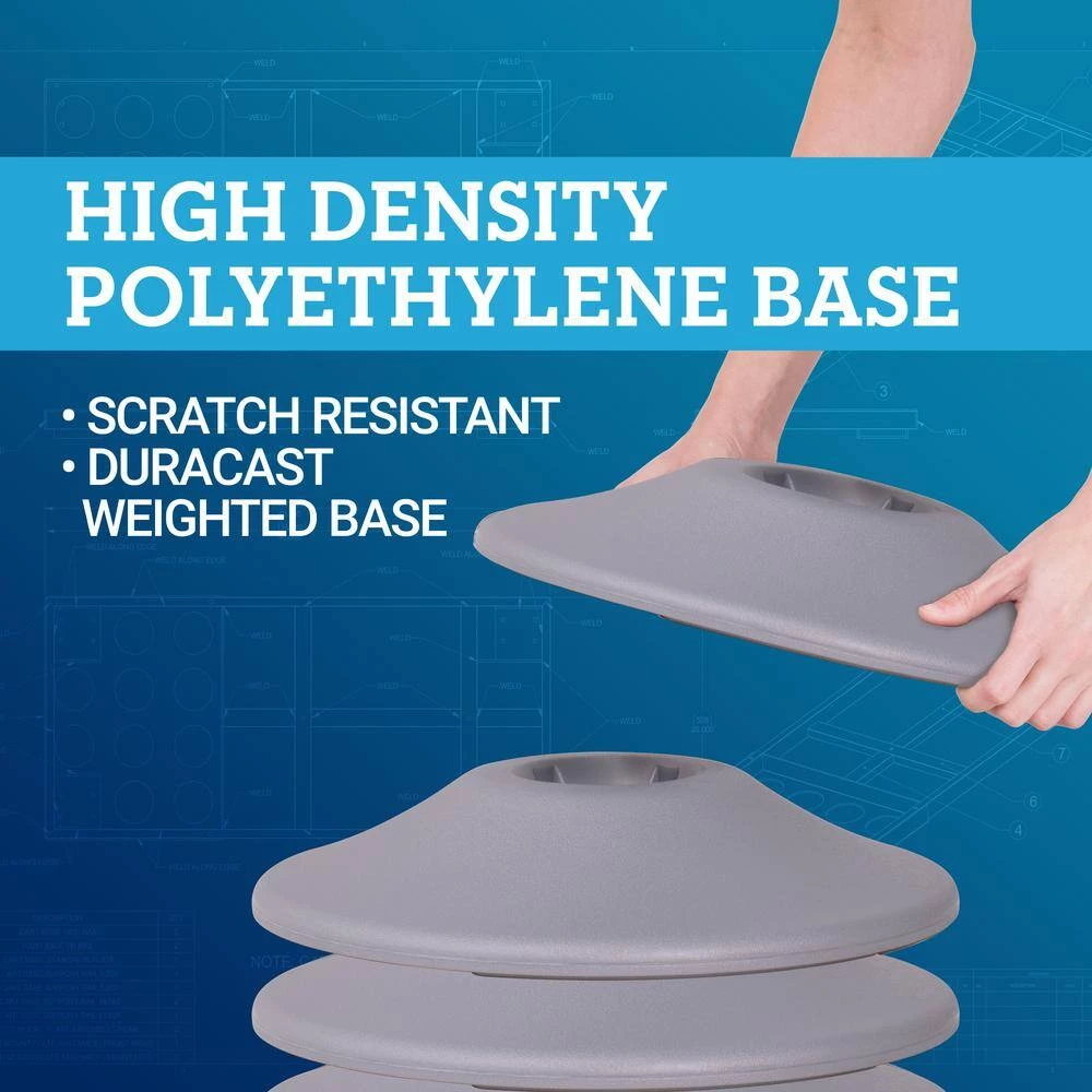 - Base is made of scratch-resistant high density polyethylene filled with Duracast, a very high strength concrete